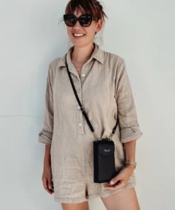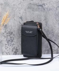 It has room for your cards, cash, glasses, keys, passport and much more. It also has an external pocket with a convenient push-button, to safely store your mobile phone.