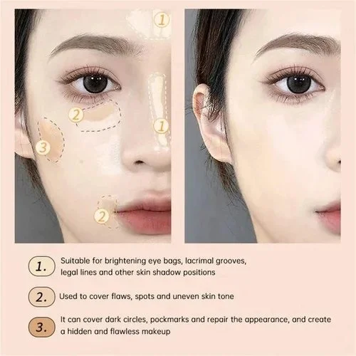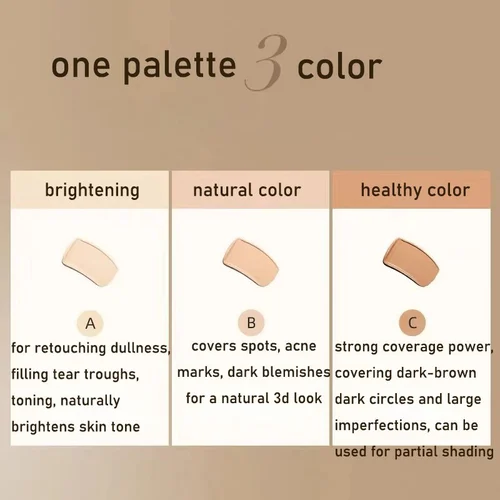 This Tri-Color Concealer is a skincare-makeup hybrid: It works as a makeup foundation to fully conceal flaws including wrinkles, flecks, acnes, large pores, acne scars & any dark spot.