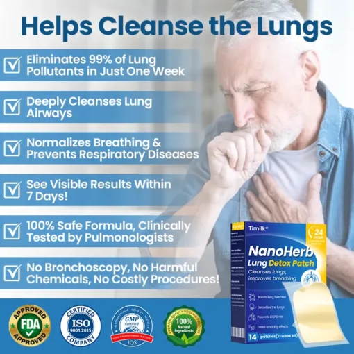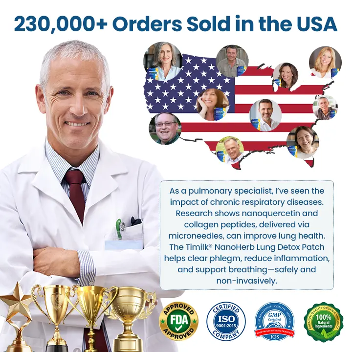 “As a pulmonary specialist, I’ve seen how chronic respiratory diseases impact patients. Research shows nanoquercetin and collagen peptides, delivered via microneedle technology, can significantly improve lung health. The Timilk® NanoHerb Lung Detox Patch effectively clears phlegm, reduces inflammation, and supports better breathing—without traditional side effects. I recommend it to those seeking a safe, non-invasive lung care solution.”——Dr. Michael Davis