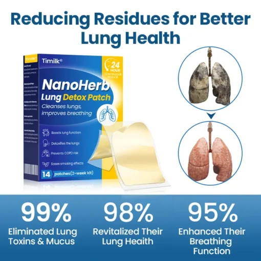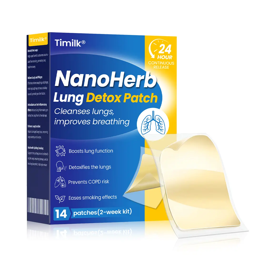 Timilk® NanoHerb Lung Detox Patch is a powerful herbal patch formulated to deeply detoxify the lungs, improve breathing, and restore respiratory health. Utilizing nano-level microneedle transdermal technology, effective relief from discomfort caused by smoking, pollution, and mucus. It provides soothing relief in just 10 minutes and helps rebuild lung health within 4 weeks.