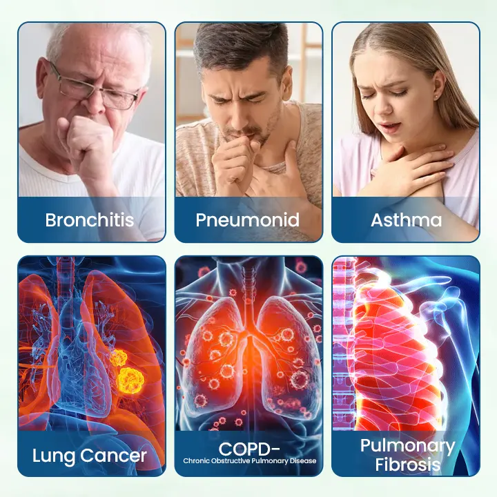 According to the U.S. Centers for Disease Control and Prevention (CDC), approximately 40 million people worldwide suffer from various respiratory diseases. Factors such as aging, smoking, alcohol abuse, air pollution, and occupational hazards contribute to the gradual decline in lung function. Accumulation of toxins and thick mucus can lead to blockages, triggering conditions like chronic obstructive pulmonary disease (COPD), asthma, pneumonia, tuberculosis, interstitial lung disease, bronchiectasis, and lung cancer.