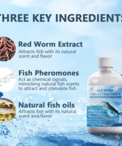 Introducing our advanced TIMNAMY™ Red Worm Fish Attractant, combining Red Worm Extract, Fish Pheromones, and Natural Fish Oils. Scientifically formulated to enhance bait appeal, it triggers natural feeding responses, making your fishing experience more rewarding. Ideal for various baits like swimbaits, soft baits, worms, and jerk baits, our attractant amplifies your chances of success on the water. Elevate your fishing game with the power of science-backed attraction.