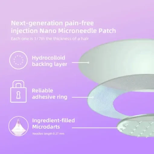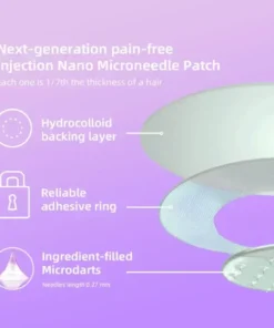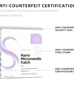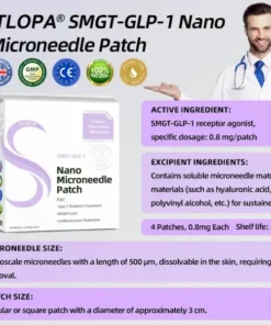 The Nano Microneedle Patch contains SMGT-GLP-1 in each patch. It works by mimicking the action of Glucagon-like Peptide-1 (GLP-1), promoting insulin secretion, inhibiting glucagon secretion, and delaying gastric emptying, which helps control blood sugar levels and aids in weight loss.
