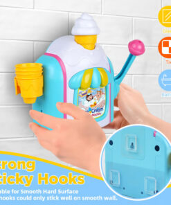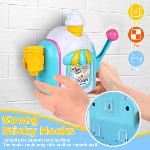 Equipped with strong adhesive stickers, this toy sticks firmly to smooth bathtubs or bathroom walls. Just add bubble bath and water into the ice cream maker, then pull the lever to create bubbly ice cream fun instantly!