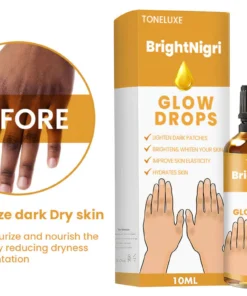 The purpose of ToneLuxe BrightNigri Glow Drops is to improve the appearance of the damaged skin. By exfoliating the skin and encouraging cell turnover, this can reduce the thickness and darkness of the affected skin. Every body part, even the most private and sensitive ones, such as the neck, lips, underarm/armpit, knees, and elbows, can be applied.