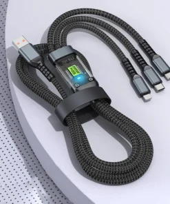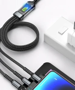 Maak kennis met de transparante, lichtgevende 3-in-1 supersnelle oplaadkabel – uw alles-in-één oplossing voor het tegelijkertijd, snel en gemakkelijk opladen van meerdere apparaten. Deze innovatieve oplaadkabel is ontworpen om uw leven te vereenvoudigen en tegelijkertijd een vleugje stijl toe te voegen aan uw technische accessoires. Met zijn unieke briljante functie en robuuste capaciteit is het een must-have voor iedereen die op zoek is naar een veelzijdige en efficiënte oplaadoplossing.