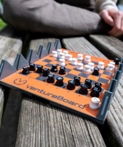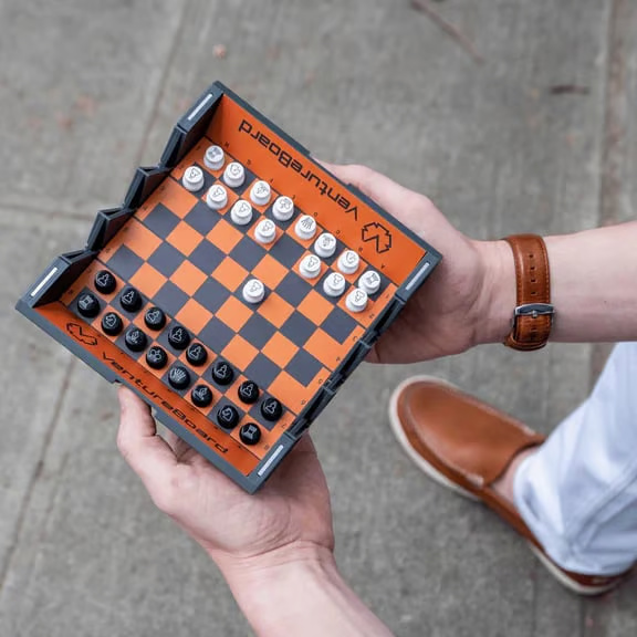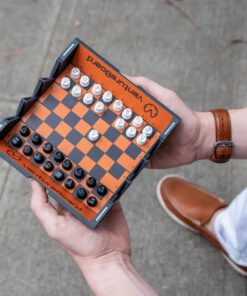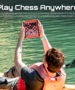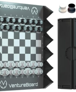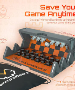 Unique rolling board stores your pieces securely inside a compact hard shell.