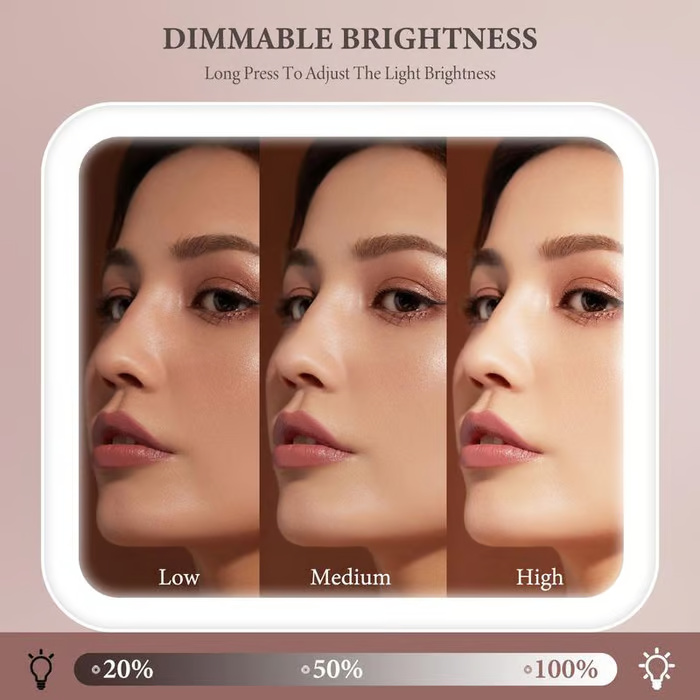 The built-in LED mirror features 3 adjustable light settings to suit every lighting condition, ensuring perfect makeup application wherever you are: