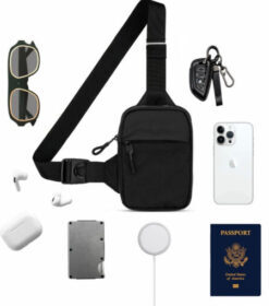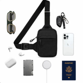 The Travel Sling Bag is spacious enough to carry all your essential items whether you’re traveling, hiking, or just going for a walk. It’s designed to be large enough to empty all your pockets into it.