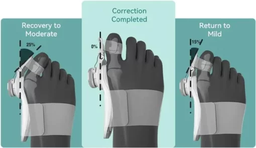 This is a natural and non-invasive way of restoring the natural position of the toe, foot, and reversing the damage caused by ill-fitting footwear.