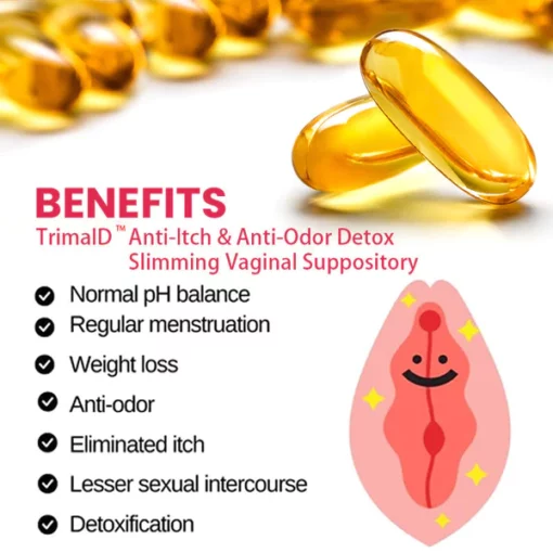 TrimaID™ detox slimming suppository serves as a natural detoxification supplement, aiding sensitive women in eliminating toxins, promoting overall vaginal health and well-being.
