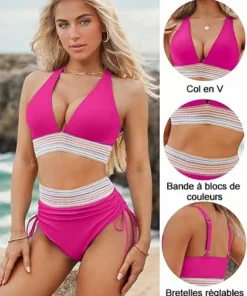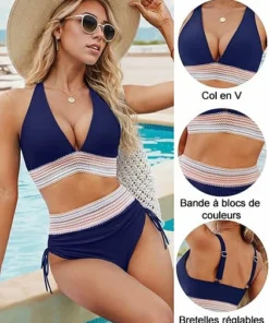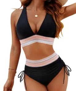 The color-block design and contrast trims add a stylish, modern touch, while the flattering V-neckline enhances your neckline and overall look. With these thoughtful design features, this bikini set ensures you stand out and feel confident.