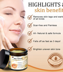 One of the significant benefits of bee venom is its ability to improve blood circulation. By increasing blood flow in the targeted area, it aids in the natural elimination of skin tags and warts while promoting tissue regeneration and accelerating the healing process. This ensures that your skin heals without scars and looks revitalized.