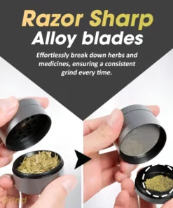 Razor Alloy Sharp Teeth: Our grinder boasts ultra-sharp alloy teeth that effortlessly break down herbs and medicines, ensuring a consistent grind every time.