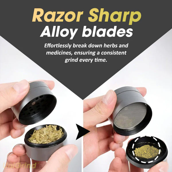 Premium Alloy Construction: Crafted with the utmost precision using high-quality alloy materials, UniGrind™ is designed to withstand the test of time while delivering unmatched grinding perforefficiency. It allows you to grind, filter, and store your herbs and medicine in one convenient device.