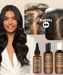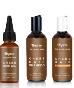 - These Unpree™ Hair Regrowth African Chebe Hair Care Essentials Set come in a shampoo, conditioner, and oil serum where all consists of active herbal blend and anti hair loss fighting ingredients. Each product can penetrate deep into the scalp and bond instantly to the strands from root to tip. Enriching the hair with ample nourishment for them to grow stronger, healthier, and looking fuller in no time.