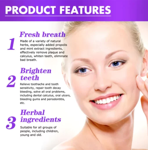 🔥 Peppermint Extract: possesses strong antibacterial and anti-inflammatory properties. It helps inhibit the growth of harmful bacteria in the mouth, preventing tooth decay and gum inflammation. The natural aroma of peppermint helps reduce bad breath and swelling of the gums. Peppermint Extract has astringent properties, which can reduce the risk of plaque formation on teeth and gums.