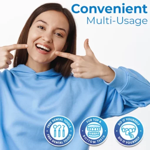 Simple and practical You may DIY teeth at home to save time and money by repairing damaged teeth, wide gaps, uneven teeth, and missing teeth. You must carefully read the directions on the packaging; with a little experience, you will obtain a quality temporary tooth.