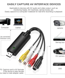 - 💡【Video Capture Card】USB 2.0 Video Capture Adapter provides a link between a PC and a video device with an RCA connector or S-Video connector, such as VHS, VCR, DVD, Hi8, TV BOX. save your precious memories from VHS tapes onto your PC hard drive. Supports HD Video File Input.