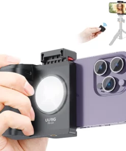 【Multi-scene Use】Compact and lightweight, easy to carry around. With a 14 inch screw hole at the bottom, the handle grip not only can be hold by one hand, but also can be installed to desktop tripod or selfie stick for more stable usage.