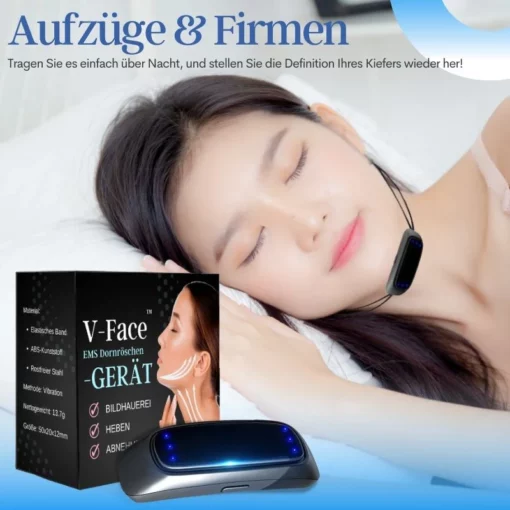 “V-Face™ EMS Dornröschen-Gerät ist unglaublich einfach zu bedienen und erfordert nur wenige Minuten Ihrer Zeit. Klinische Tests haben gezeigt, dass dieses Gerät die Gesichtskonturen verbessert, Falten minimiert und die Haut ebenmäßig und strahlend macht. Die überwältigend positiven Bewertungen sind ein Beweis für seine Wirksamkeit – Sie müssen es selbst ausprobieren, um die Ergebnisse zu sehen.” Dr. Kathleen Stokes