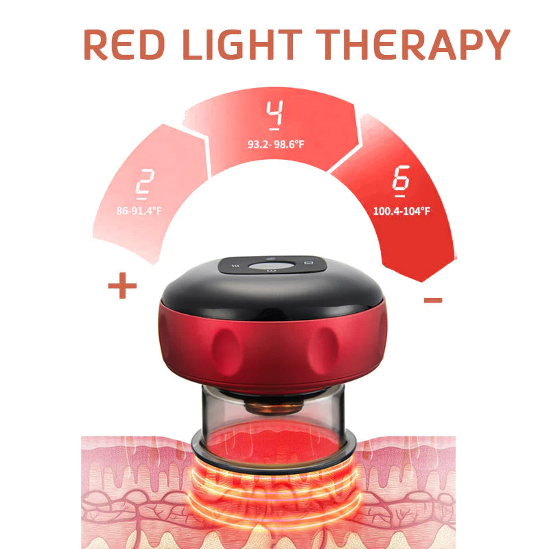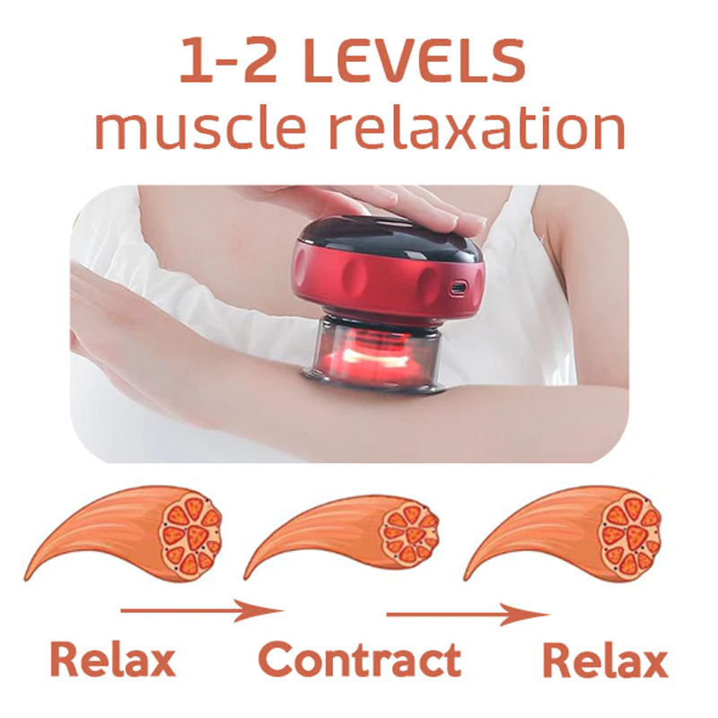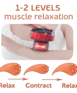 - 1-2 levels of muscle relaxation – The innovative temperature control chip that is included into the vacuum cavitation cupping device maintains a consistent temperature to aid in contracting and relaxing muscles.