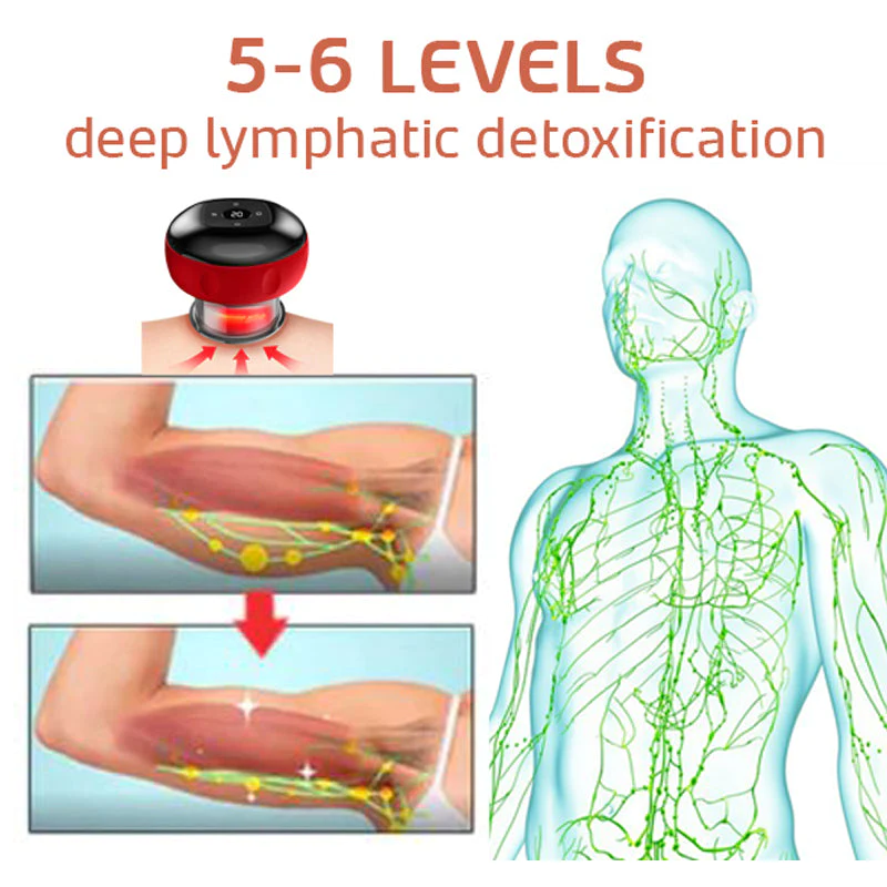 - 5-6 deep lymphatic detoxification – The Vacuum Cavitation Cupping Device makes use of a unique technology that may transform electrical energy into heat energy that permeates your skin and speeds up the lymphatic vessels’ slow lymphatic movement.