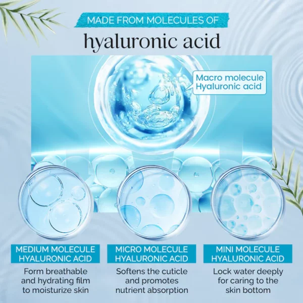 - Hyaluronic Acid – also known as sodium hyaluronate, is a natural compound made up of chains of sugars (called “sugar chains”). When you apply hyaluronic acid to your skin, it helps to hydrate and plump up your skin by binding moisture molecules to those sugar chains. This means that your skin will feel softer and look smoother. You may have heard about hyaluronic acid as an ingredient that helps reduce wrinkles or fine lines by filling them in with moisture. That’s because when hyaluronic acid binds to water molecules in the atmosphere, it provides a reservoir of moisture around your face—which makes wrinkles less visible.