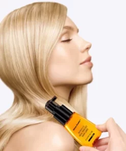 - Dispense an appropriate amount of the Anti-frizz Hair Serum to the palm of your hand.
