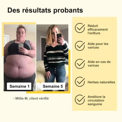 - Réduction de 90 % du liquide lymphatique en excès en 1 mois