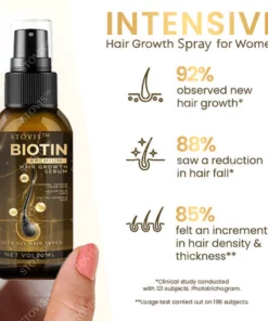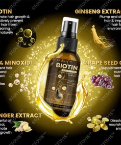 Stovis™ Biotin Hair Booster penetrates deeply into the scalp to nourish hair follicles and maintain a healthy scalp environment. The spray deliver nutrients and oxygen to the hair follicles. also helps increase the size of hair follicles. which promotes the growth of thicker. stronger hairs. Stovis™ Biotin Hair Booster when used on a daily basis. can help promote healthy hair development. Stovis™ Biotin Hair Booster is dermatologist-tested. A Natural & Effective solution for Thinning Hair. Anti-DHT. Androgenetic Alopecia and Postpartum Hair Loss.