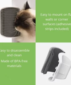 - Install and Teach: Install the cat brush on the wall corner, cat trees or furnitures where your cats usually pass by, and then help them to rub their face or body gently on this groomer, teaching them how to use this product.