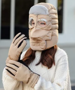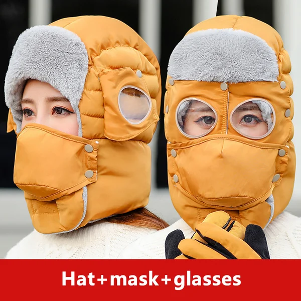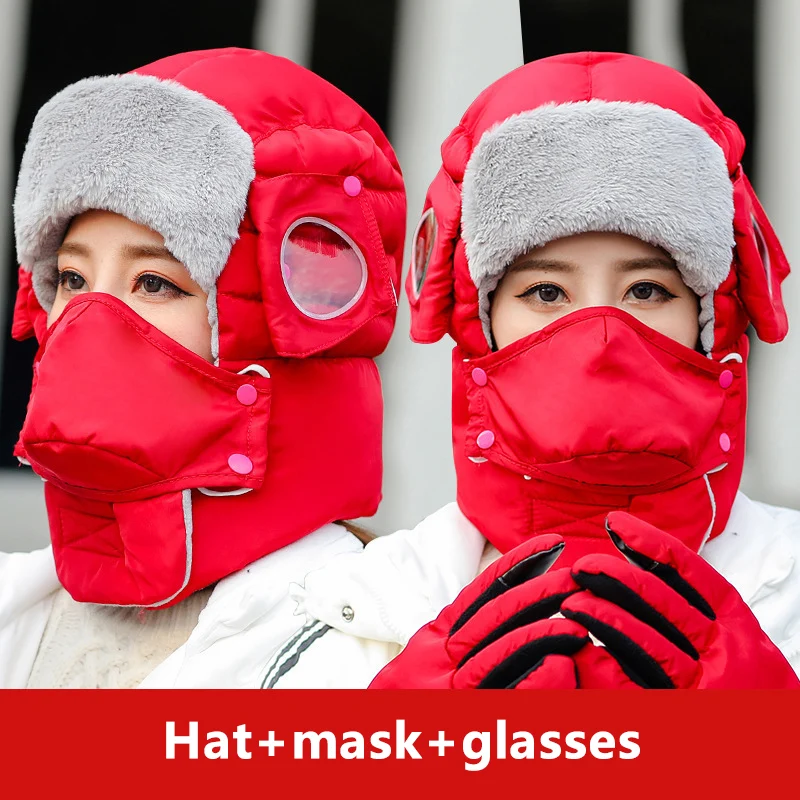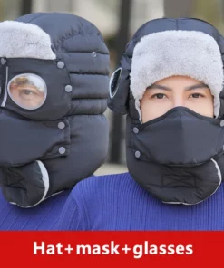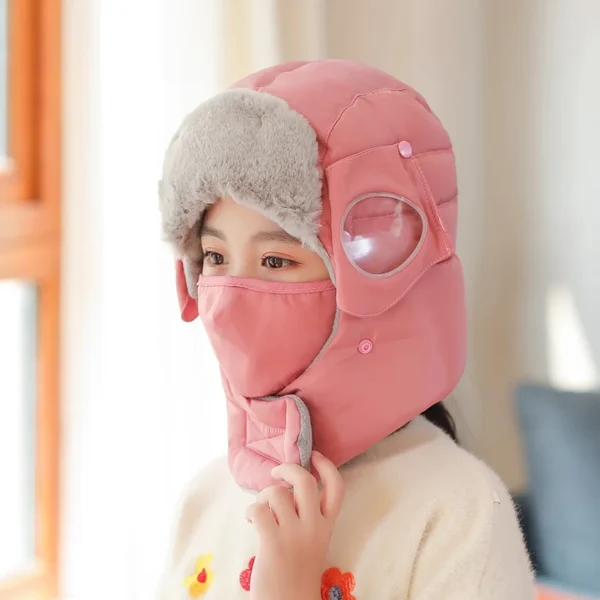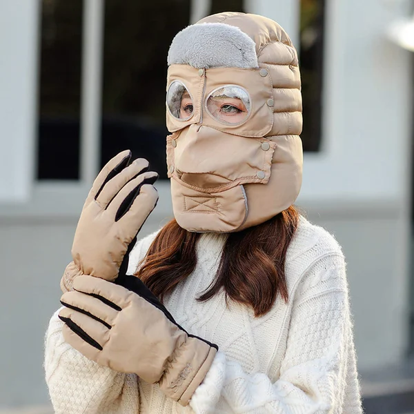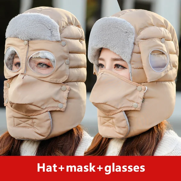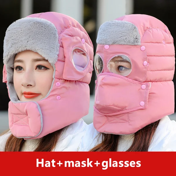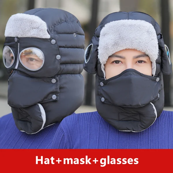 Warm Winter Hat With Earmuffs Face Mask Goggles