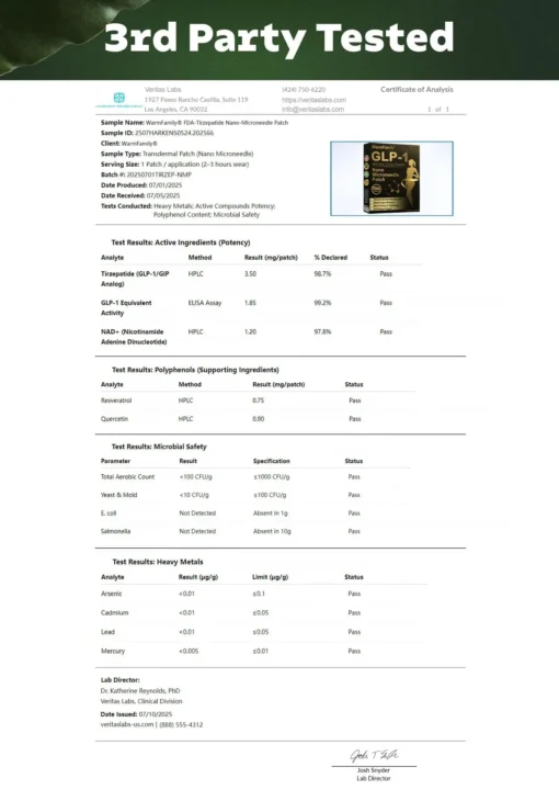 WarmFamily® FDA-Tirzepatide Nano-Microneedle Patch (with Bee Venom Peptide) was developed by the Metabolic Wellness Research Collaborative, a dedicated team of professionals focused on advanced weight management and metabolic health solutions.