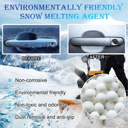 High-energy sea salt: We have increased the dissolving power of everyday sea salt, strengthened its bond with ice, significantly lowered the melting point of ice, making it easier to melt. At the same time, the high-energy version has a 90% lower salt concentration than the original, making it environmentally friendly for surrounding plants and aquatic life.