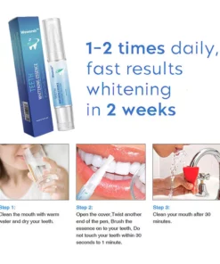 Wewersh™ Essens för tandblekning är lätt att använda, och den praktiska pennformen gör den perfekt för blekning på språng som ger dig ett skinande leende och en fräschare andedräkt. Vrid bara pennan för att släppa ut essensen på borsten och applicera den på tänderna. Essencen är skonsam mot emaljen och är säker att använda dagligen, vilket ger märkbara resultat efter varje behandling.