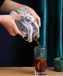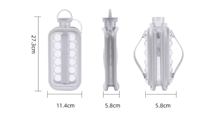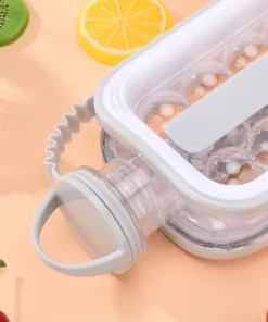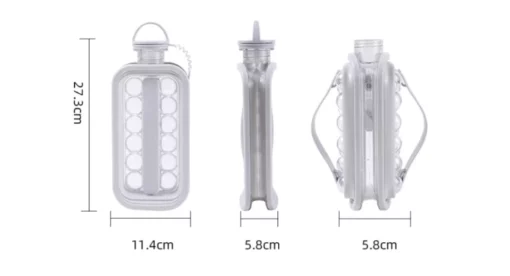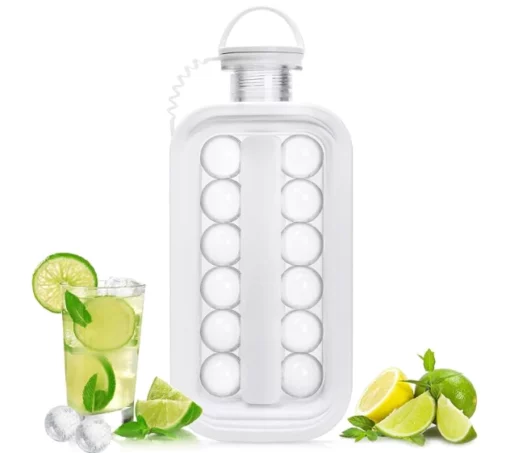 This is a 2-in-1 water bottle that serves as both an ice ball maker and a modern water bottle. It is made of Tritan, which is BPA-free. It is easy to use and clean, and it comes with a sealed lid to prevent leakage and odors, allowing for easy pouring without spilling or getting messy. It can be placed in the refrigerator at any angle, so you don’t have to make flat space for an ice maker like before.