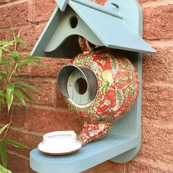 🌸It comes Fitted on a Green Wood Frame including a hole for the spout in the wood to make the Birdhouse look naturally part of the frame with a hole for the teapot lid to fit to be used as a Feeder and a fitted Wood Front Panel with a bird hole.