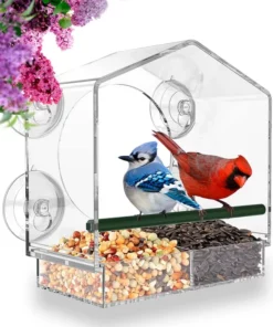 Feed and watch wild birds from the comfort of your home! Made from high transparency, crystal clear, see-through acrylic so that you can examine beautiful songbirds in vivid detail just inches away from your eyes.
