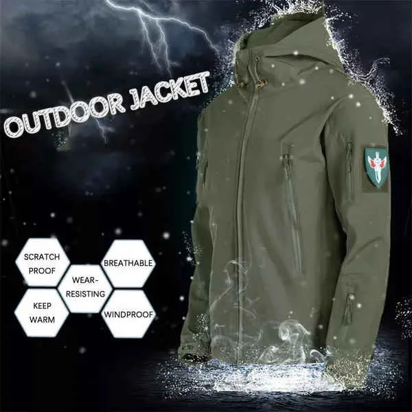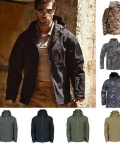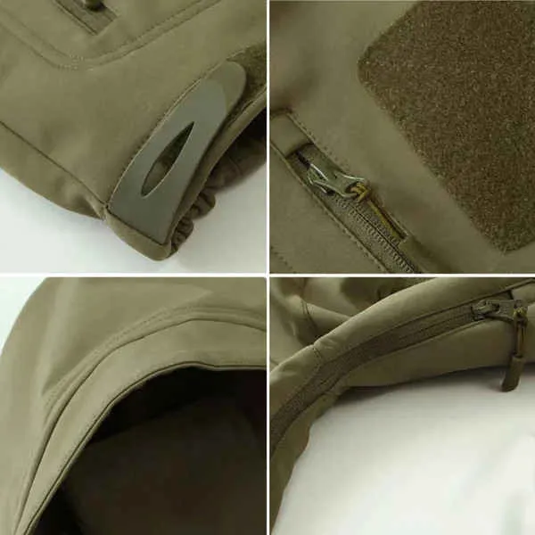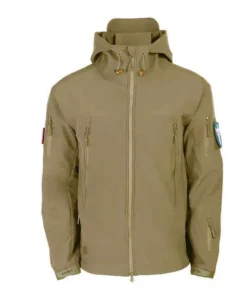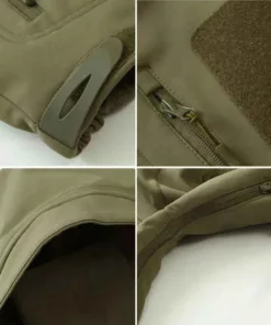 - Design: Military tactical design with stand-up collar and full zip-up, patch on each arm.