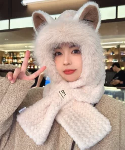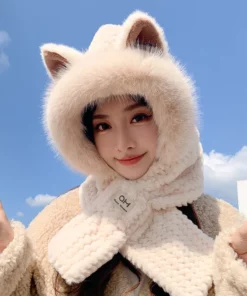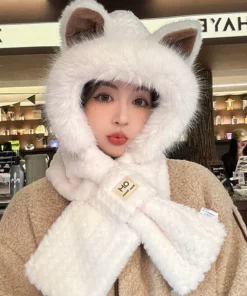 - Cute animal pattern: the hat surface covered with soft plush, 2 adorable ears on it, the bottom of scarf has pocket, can be used as gloves or can store candies, keys and other small thing.