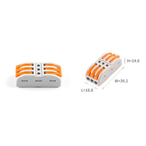 The lever wire connector instead of traditional electrical tape and electrical butt connectors twist-type, technological innovation reduces wiring time by 70%. Make connections cleaner and space-efficient with low maintenance.