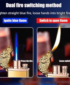 - Magic Dual Flame Lighter: This cool lighter has windproof direct jet blue fire and soft yellow flame. When you open the head cover, press the switch to directly hit the flame, and the fire will be fierce and windproof, release the switch and the flame becomes an open flame.
