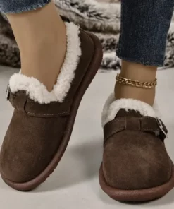 WOMENS PLUSH ROUND TOE SLIP-ON FLATS