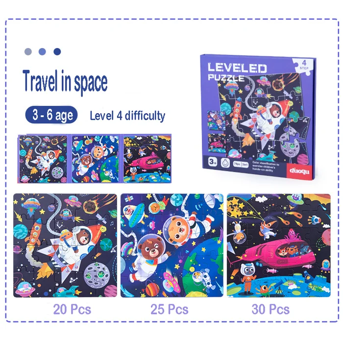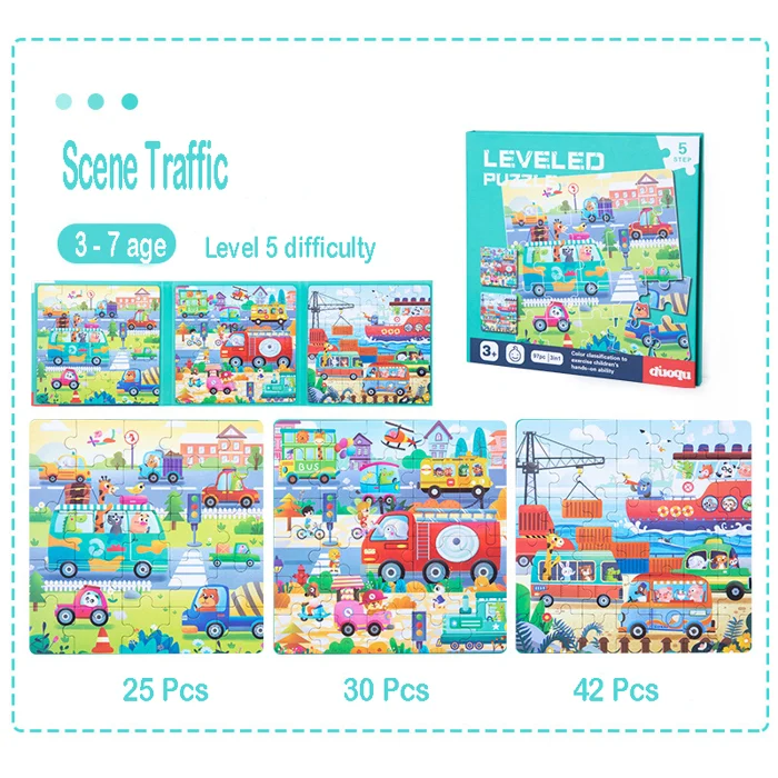 Wooden Magnetic Puzzle Set contains 3 premium version puzzles with imaginative and exciting scenes. From easy to difficult, full of fun and challenges.