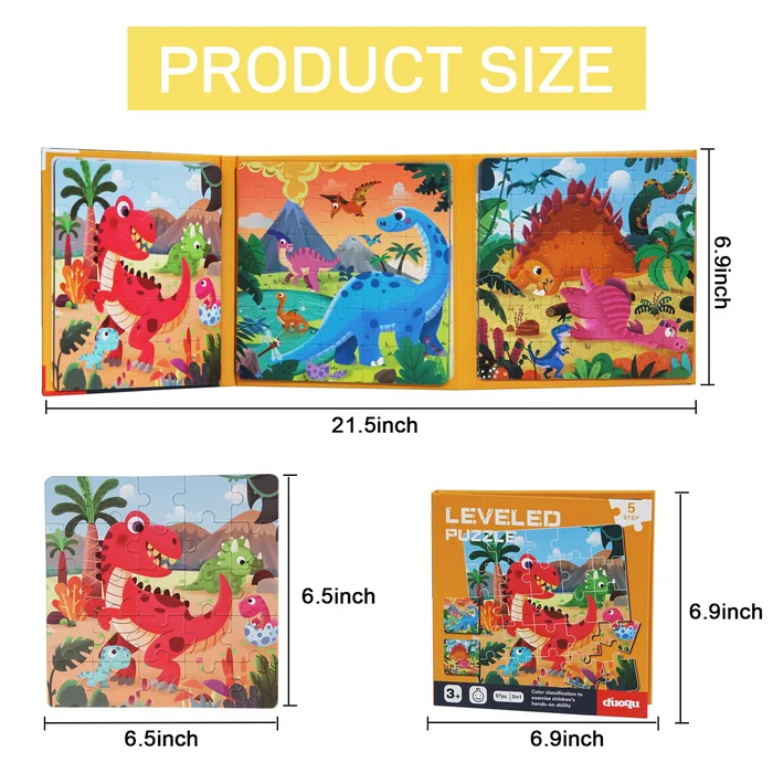 The magnetic design eliminates the need to worry about losing the puzzle, and the three puzzle pieces are combined into a book for easy portabilit.