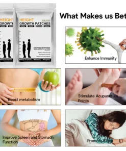 A3:The patch contains bioactive botanical compounds that are applied to specific body points. These compounds penetrate the skin, interact with these points, and initiate a physiological chain reaction. This stimulation sends signals to the pituitary gland, which increases the secretion of growth hormones essential for bone and tissue growth.