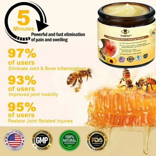 Then our YUNPSO™ Pain-Relief Bone Healing Cream is perfect for you! Working closely with leading experts in the field of naturopathy and apitherapy, we have developed a revolutionary cream that harnesses the healing powers of natural bee venom to fight a wide range of ailments. YUNPSO™ Pain-Relief Bone Healing Cream is your enabler to a pain-free, healthier life that allows you to fully enjoy your days.