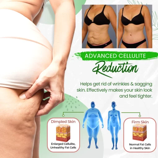 - Reduces the appearance of cellulite, smoothing and toning the skin.