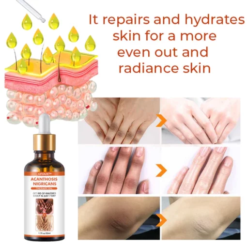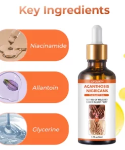 Dark skin can be exfoliated with GFOUK™ Acanthosis Nigricans Therapy Oil. By exfoliating the top layer of dead skin cells that may be causing a dull or uneven skin tone, exfoliation can assist to lighten dark skin. By releasing the connections that hold dead skin cells together, this therapy oil helps remove them from the skin’s surface with ease. The affected skin in Acanthosis Nigricans can be itchy, irritated, or inflamed. Moisturizing can help to soothe these symptoms by providing a protective barrier over the skin and reducing friction.